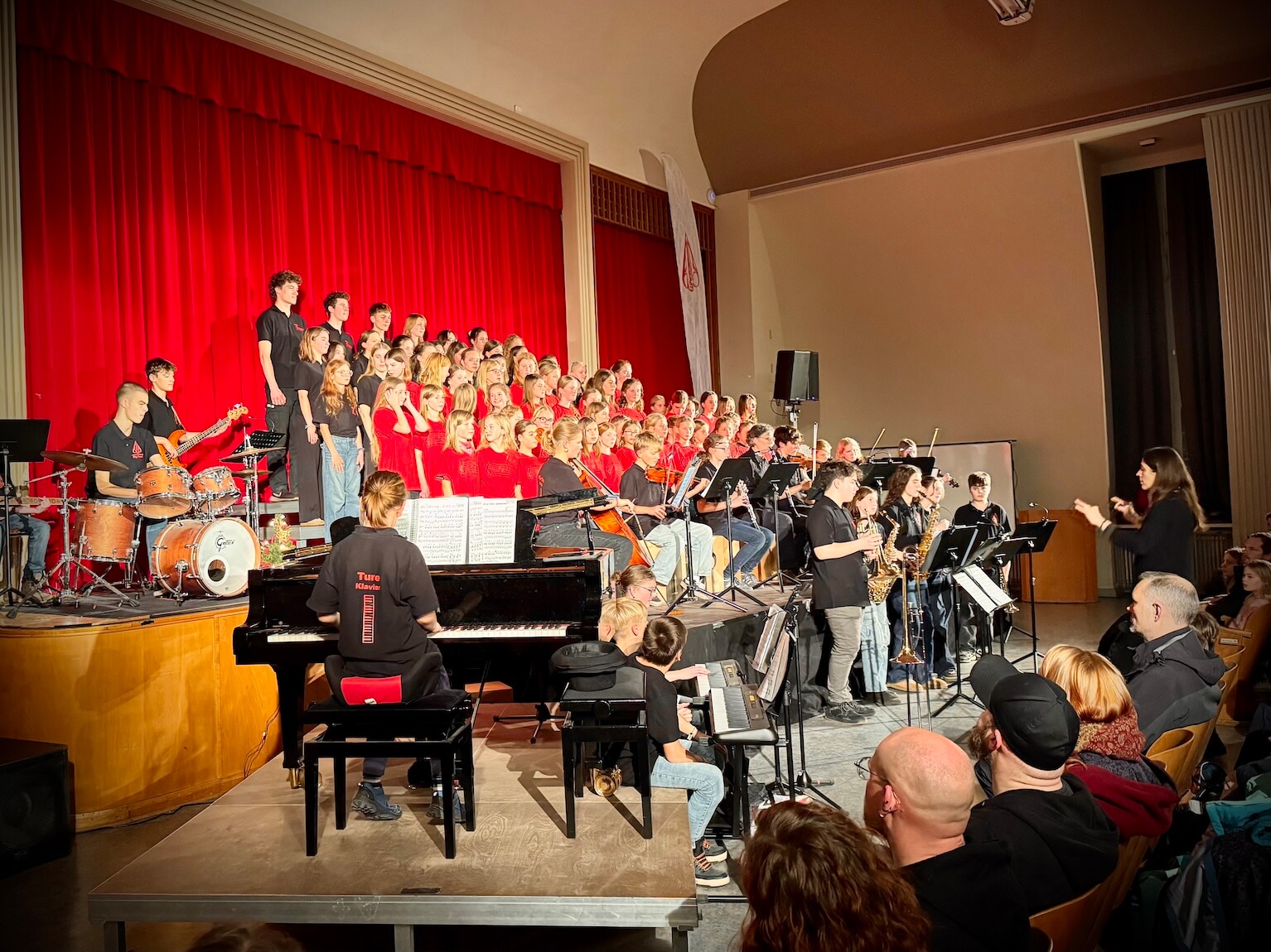 Alle Ensembles der OzD präsentierten die musikalischen Ergebnisse dieses kurzen Halbjahres in der zum Platzen gefüllten Aula. Die Chöre, Orchester, Big Band, Junior-Combo traten auf - und die Gitarren-AG feierte Premiere! Das bemerkenswert gut gelaunte Publikum spendete viel Applaus, eine Wohltat für alle Beteiligten - wir bedanken uns herzlich und wünschen allen harmonische Feiertage und alles Gute für alles Kommende im kommenden Jahr.